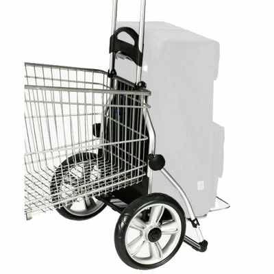 Grâce à la fonction HangFix, le châssis peut s’accrocher à l’avant du caddie de course, vous permettant de faire vos achats sans encombrement. (Voir photo 3).