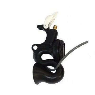 Grâce à son bidon ultra léger rempli d’air, ce klaxon développe une puissance maximale pour un poids plume. La recharge se fait via une valve Schrader (standard large) cachée sous le bouton poussoir. On peut gonfler jusqu’à 5,5 bars (80 PSI), avec un compresseur ou une pompe à main, ce qui permet d’exercer jusqu’à 20 coups de klaxon en un seul remplissage selon la pression de chaque coup.