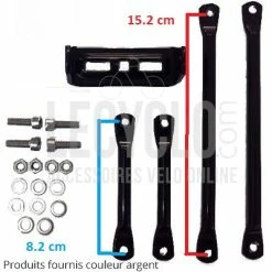 Si votre cadre est dépourvu d’oeillet au niveau de votre axe de roue, nous proposons un kit d’adaptation du cadre Tubus (compatible seulement sur axe à serrage rapide). Notez aussi que dans le cas où votre vélo ne possèderait pas d’œillets sur le cadre derrière la tige de selle pour attacher les tiges de fixation fournies, plusieurs solutions sont possibles :